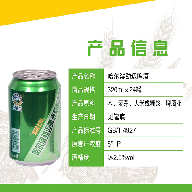 哈爾濱勁邁啤酒有限公司以展示人生奉獻社會為宗旨,奉行以市場為主導,視質量為生命的觀念,為廣大消費者釀造啤酒。以人為本,厚德重信,科學發展,和諧共贏,與時俱進,開拓創新是我企業的經營理念。