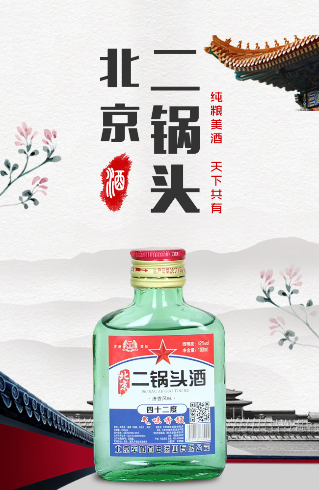 產品名:軍旗百年北京二鍋頭酒42°100ml