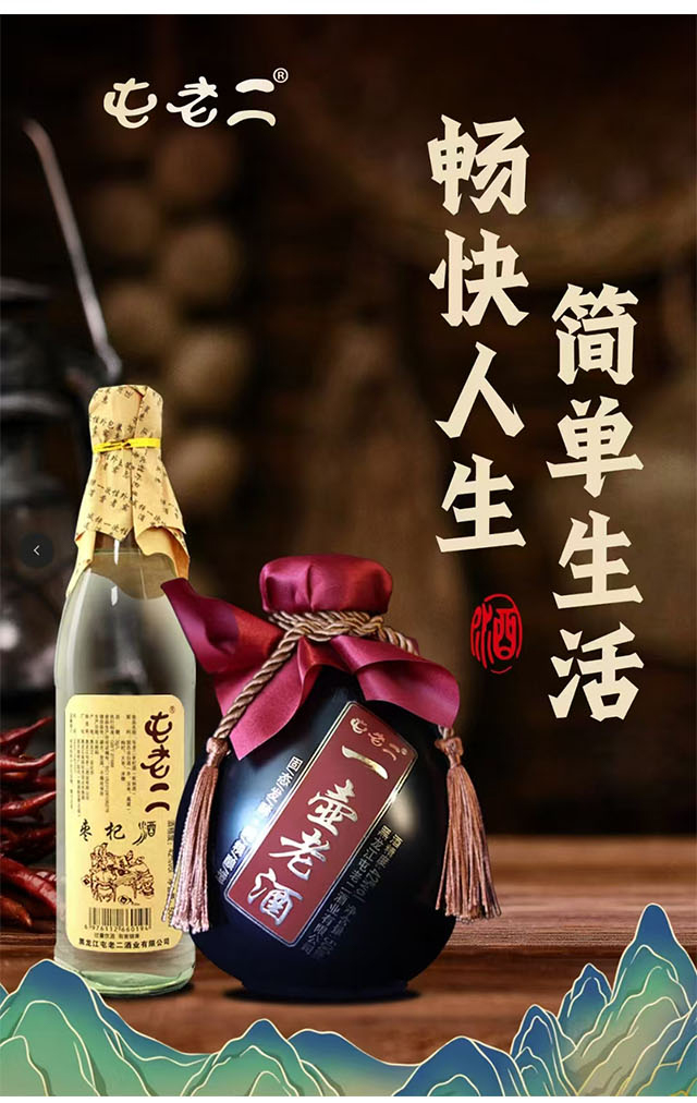 屯老二酒是黑龍江屯老二酒業有限公司旗下品牌,堅守傳統釀造工藝,優選東北糯紅高粱,中溫制曲,八十天珍釀發酵;使用陶壇儲存,自然老熟。酒體色澤清亮、入口柔順,香氣馥郁、回味悠長。