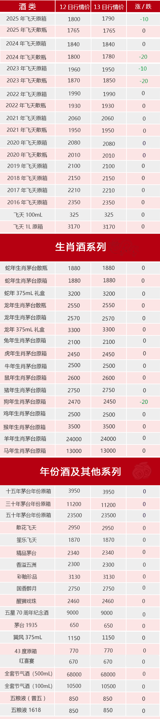 飛天下跌。10月13日茅臺行情價。雙節茅臺價格變化